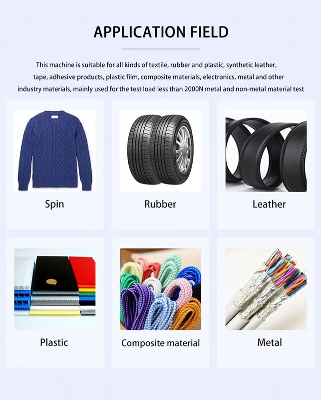 - Comprehensive testing capabilities including tension, compression, bending, shearing, tearing, and peeling